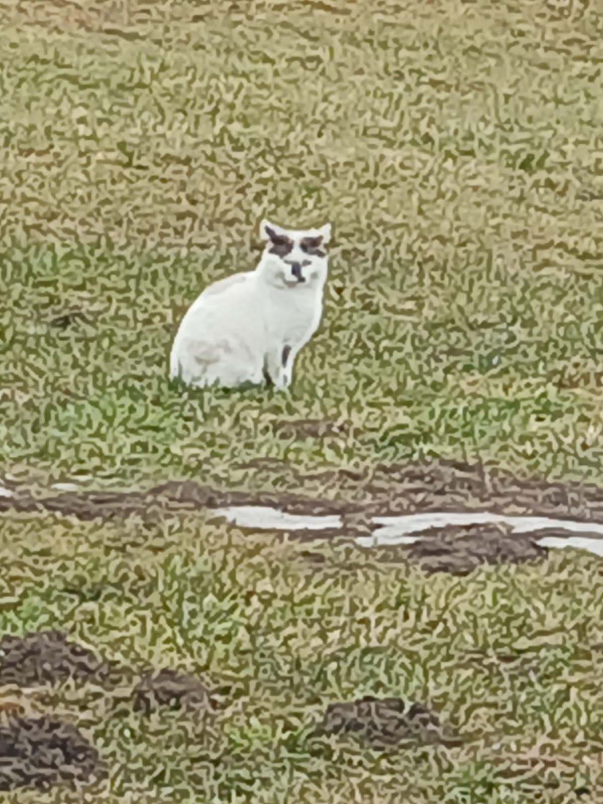 Er ist ein weißer Kater mit schwarzen Flecken und blauen Augen. Extrem scheu gegenüber Menschen und sehr verfressen. Er könnte dort bleiben und würde auch sobald wie möglich kastriert werden.